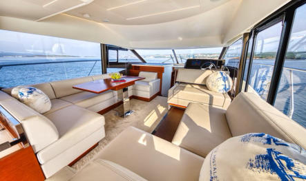 Detailed equipment - Upholstery for the front lounge area with fold-up backrest and leg adjustment - Teak cockpit table with folding leaves - Protective covers for cockpit table, rear bench and front lounge area - Additional mooring cleats at the stern - Double anchor control on the helm and chain counter - Electric window on the port side - Starboard side door - Folding luxury table in the saloon, electrically height adjustable - Electrically convertible helm seat - Stove with 4 glass ceramic hobs - Extractor hood - Combined microwave/grill - Large refrigerator with separate freezer compartment - Dishwasher - Mattress slat sets in master and VIP cabins - 2 x Axiom 12" GPS in the wheelhouse - 2 x Axiom 12" GPS on flybridge - Gyro EV-2 autopilot for IPS - Volvo interface - Various speakers inside and outside - TV in the saloon with electric Stand - TV in the master and VIP cabin - Amplifier for the TV antenna - Bluetooth Radio Fusion MS-NRX300, MSRA70N - Mooring set - Anchor set - Inox protection for the bow - Bimini for the flybridge Sumbrella Steel with light - Kitchen/grill and refrigerator on the flybridge - Hydraulic gangway - Hydraulic stern bathing platform with Teac - Cockpit cushions - Abacos window coverings Sunworker Anthracite - Bow thruster - Generator 15 kW 220 V/50 Hz - Air conditioning chiller system / AIRCON FRIGOMAR BLDC 67000BTUm - Heating with the air conditioning system - Skipper's cabin - Additional convertible double bed in the saloon - Carpet in the saloon and in the cabins - Vogue - Carpet at the entrance to the saloon and the stairs - Vogue - Teac in the kitchen, saloon and stern - Inverter 12/230V 2000VA 50HZ - 3 TB media server - WiFi hub - Electric trim tabs - Extra joystick in cockpit - Electric winches in bow and stern on port side - Watermaker approx. 130 liters per hour - Washing machine with dryer - Fender storage shelves on the bow pulpit - New in 2025, Krups sandwich maker - New in 2025, Emerio egg cooker - New on 2025, watermaker with 130 liters per hour - New on 2025, coffee machine (Dolce Gusto) - New on 2025, complete sun protection for the cockpit with mesh - New on 2025, extra soft mattress pads on all beds - many small optimizations for the 2026 season - new for 2026: new dinghy with 8 hp Yamaha engine