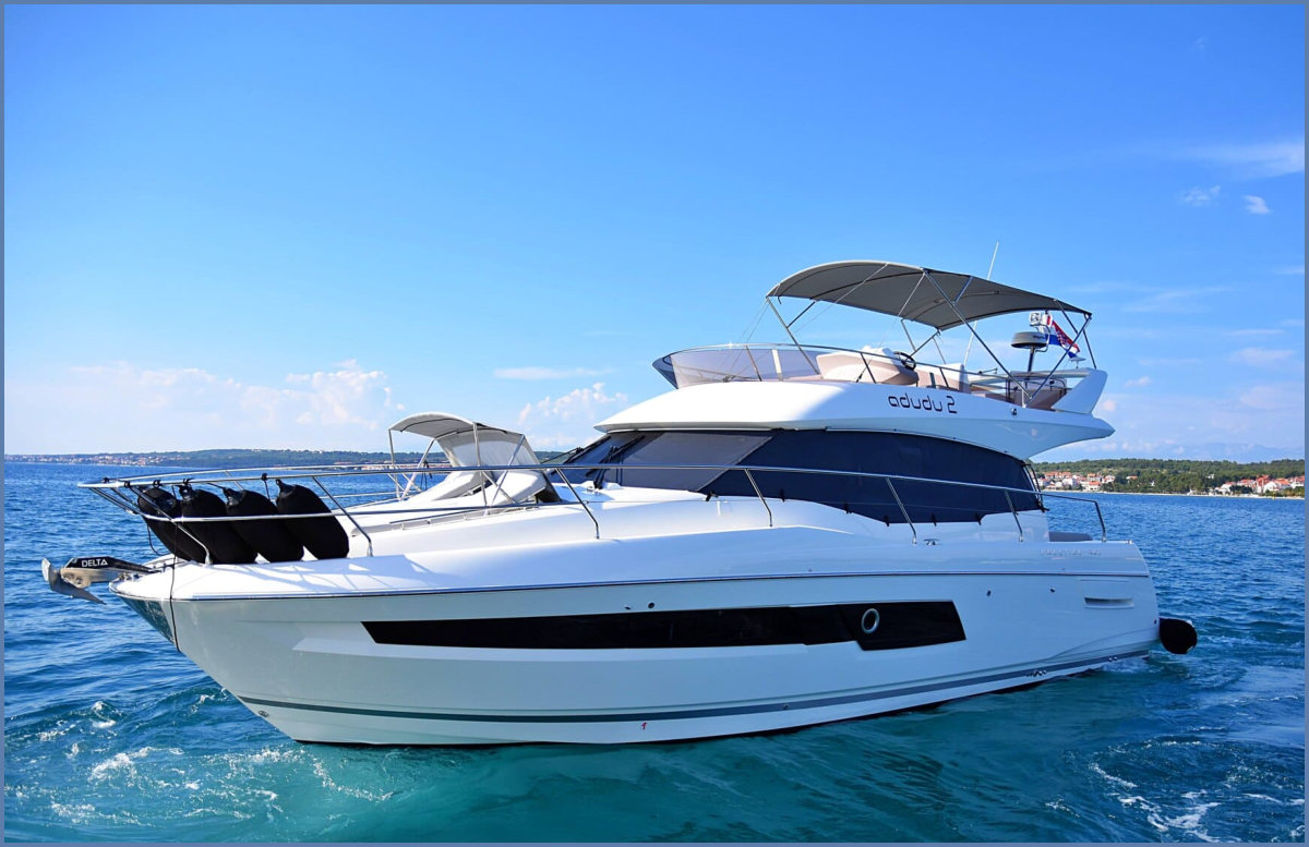 Adudu 2 has an XXL flybridge, 2 toilets with shower, a power